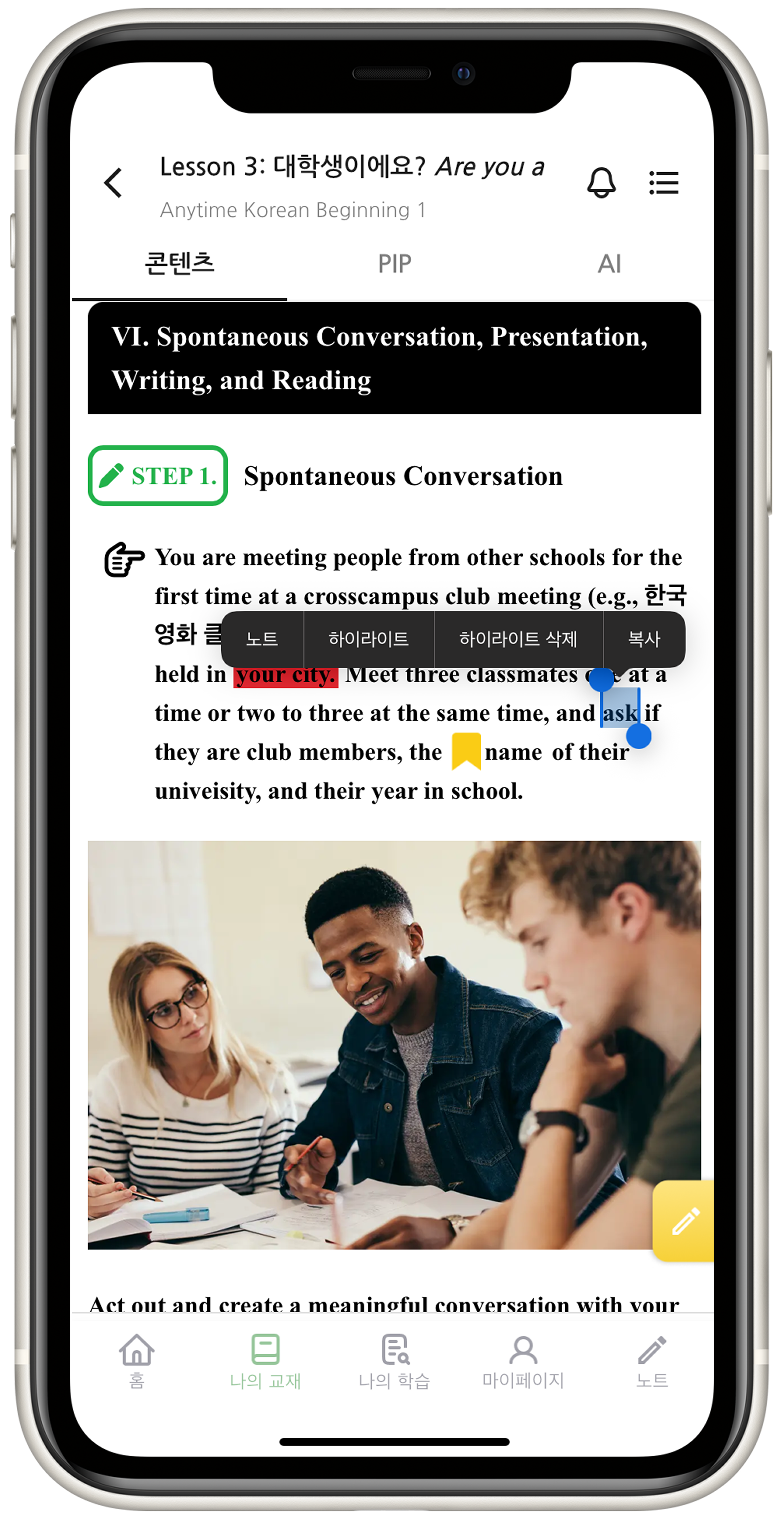 실제 교재 흐름을 구현해 몰입도 높은 학습 환경을 제공합니다.